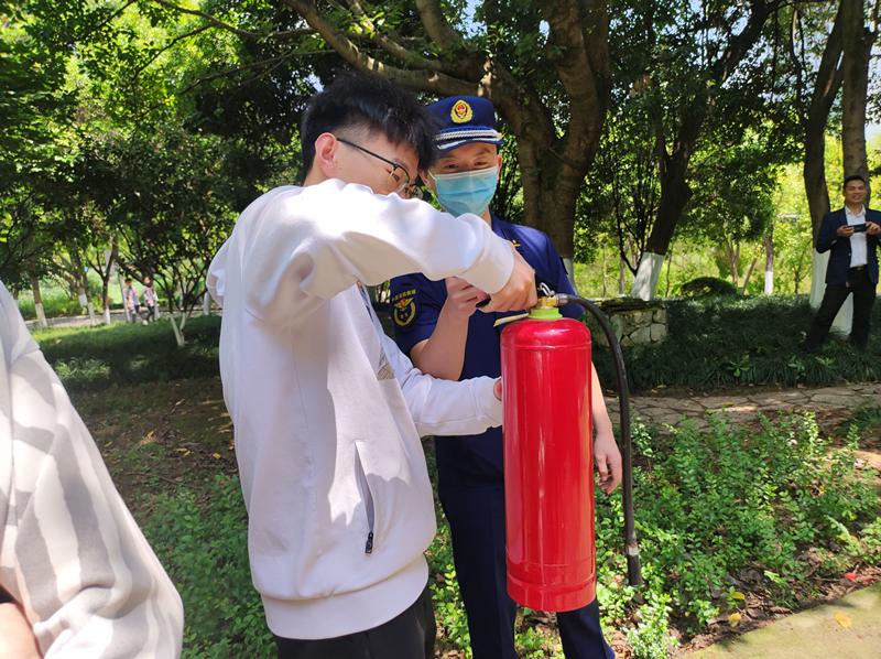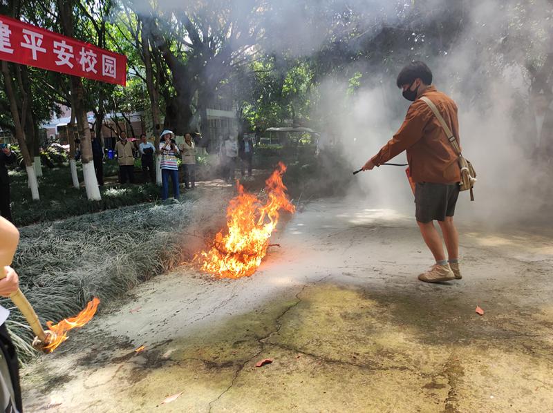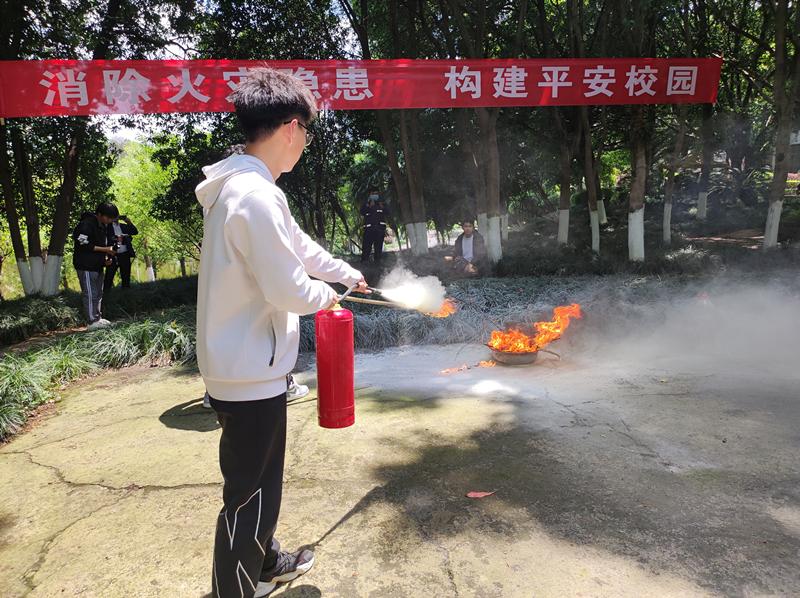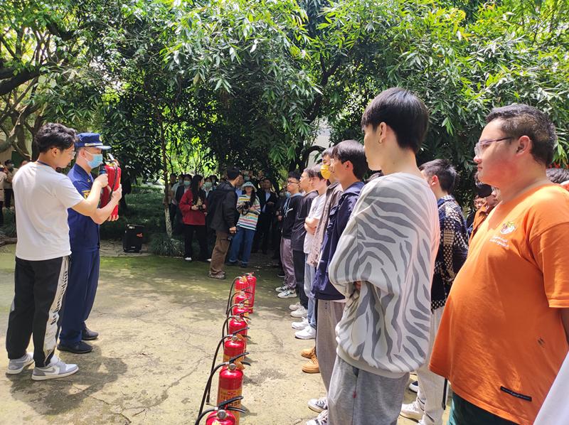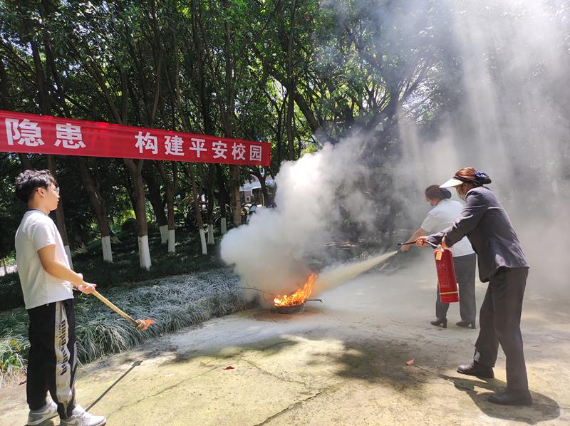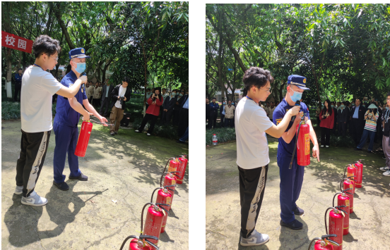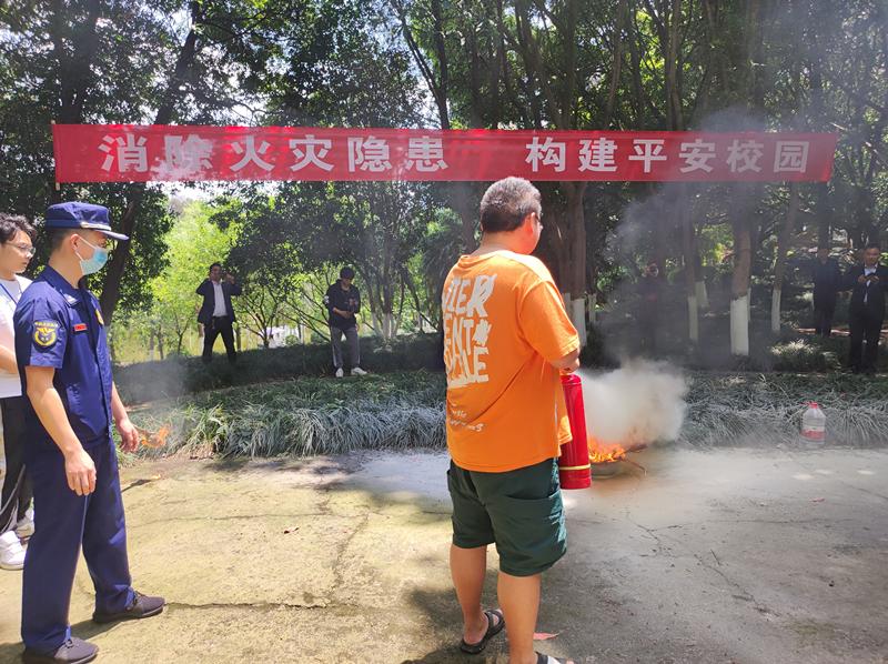 在集合地点,合川区消防救援支队教官对在场的人员进行消防安全知识培训和灭火演练。教官强调:希望每位师生员工,都要熟悉掌握消防应急逃生疏散路线,不断增强安全意识,提高应对突发事件的应变能力和逃生自救能力,自觉远离火灾,学习自救本领,共筑平安校园。