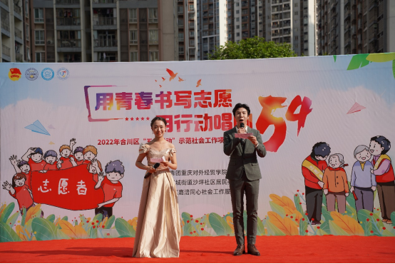 为深入学习贯彻习近平新时代中国特色社会主义思想,传承红色文化和革命精神,引导和帮助广大青年学生在社会课堂中受教育、长才干、做贡献,英国威廉希尔唯一官网联合合阳城街道、合川区嘉涪同心社会工作服务中心在合川区沙坪社区顺利开展“五四”青年节主题活动。此次活动共计152名志愿者参与其中,设置红色游园会特色志愿服务摊位6个,文艺汇演节目12个,社区的所有居民到场并参与活动,直播在线观看人数达700人次。