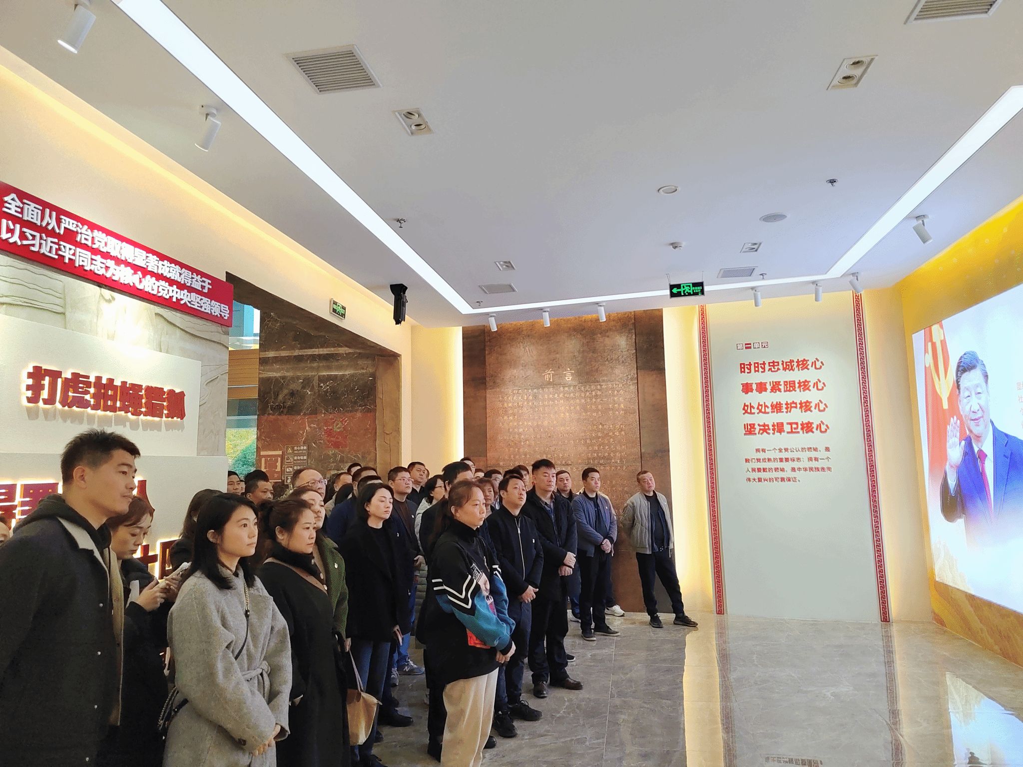 在廉政教育基地,党员干部重温了入党誓词。随后,大家在解说员的带领下,参观了“四个核心”“伟大的历史性变革”“中国共产党党风廉政建设历程”“中国共产党在重庆的党风廉政建设”等展区,观看了典型的腐败警示案例。一个个典型案例触目惊心、教训深刻,一封封忏悔书直击灵魂、发人深省。