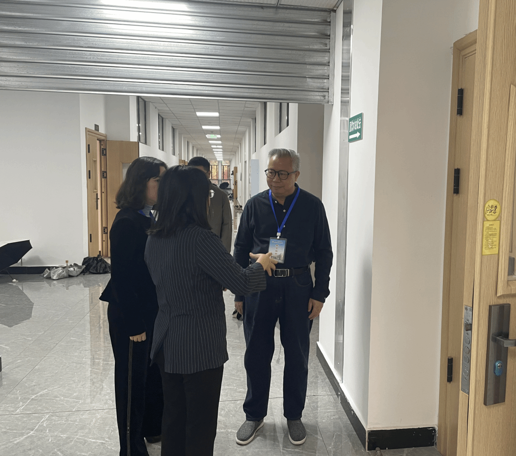 图四 副校长王乃武与教学单位就学院文化墙打造进行交流